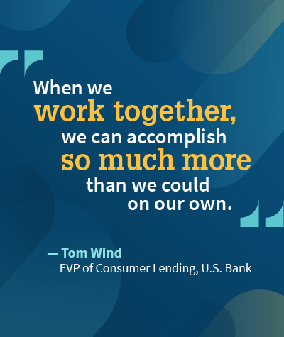 This additional data helps U.S. Bank identify more qualified borrowers for mortgages, which Wind describes as a win for everyone — the new homeowners, the community, and the bank. "It's also so motivating to our team," he adds. "They're celebrating the fact that someone has become a homeowner. That fulfills our purpose."
