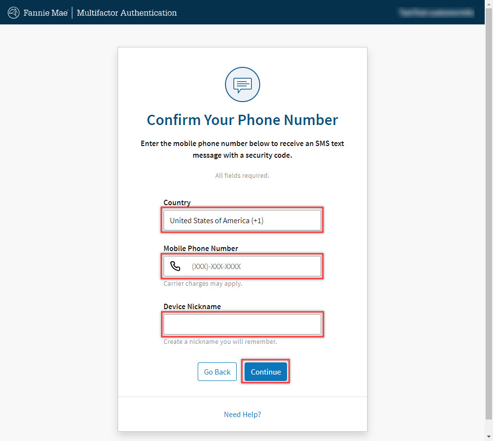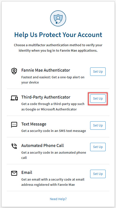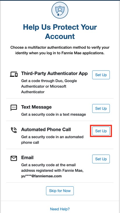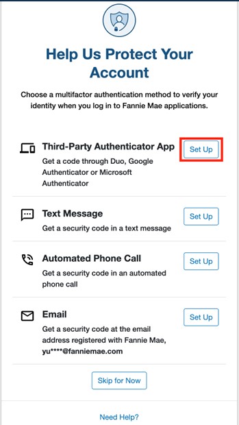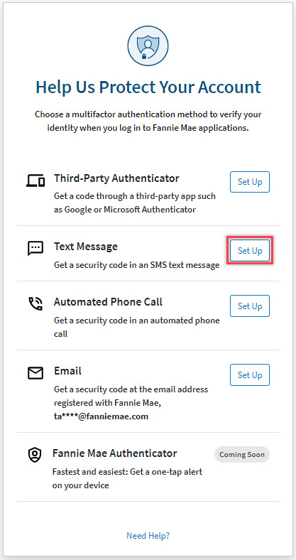 The user must setup at least one MFA verification method to access Fannie Mae systems.