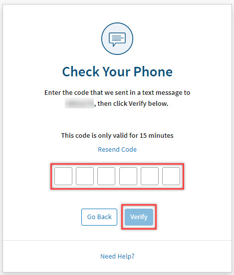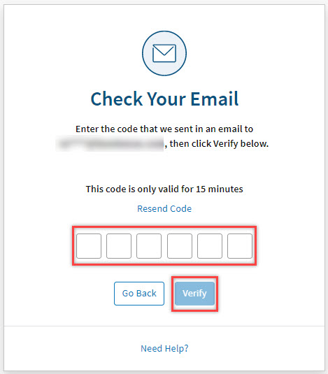 Note: User has 6 attempts to enter the valid code. The code is valid for 15 minutes. If the code expires, select Resend Code to receive new code.