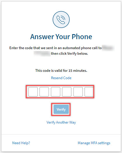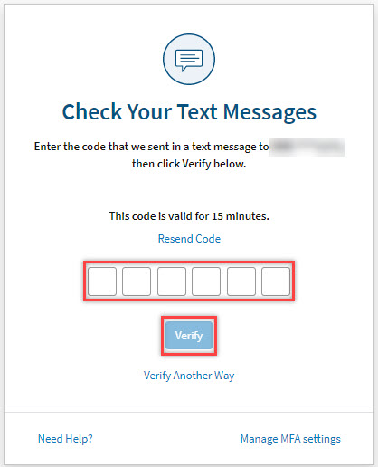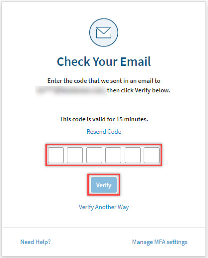 Note: User has 6 attempts to enter the valid code. The code is only valid for 15 minutes. If the code expires, select Resend Code to receive new code.