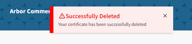 - You will see a pop-up message confirming the certificate was successfully deleted.