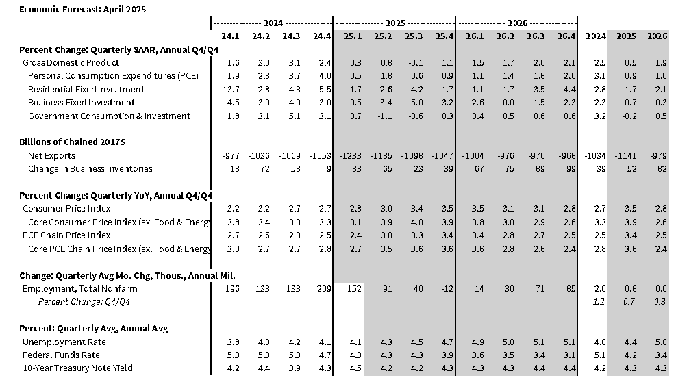 Note: Interest rate forecasts are based on rates from March 31, 2025; all other forecasts are based on the date above.