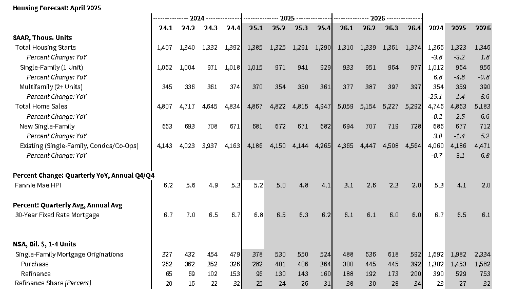 Note: The Fannie Mae HPI forecast is updated on the first month of every quarter. Interest rate forecasts are based on rates from March 31, 2025; all other forecasts are based on the date above.