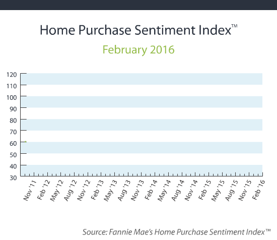 For detailed findings from the February 2016 Home Purchase Sentiment Index and National Housing Survey, as well as a brief HPSI overview and detailed white paper, technical notes on the NHS methodology, and questions asked of respondents associated with each monthly indicator, please visit the Consumer Attitude Measures page on fanniemae.com. Also available on the site are in-depth topic analyses, which provide a detailed assessment of combined data results from three monthly studies of NHS results.