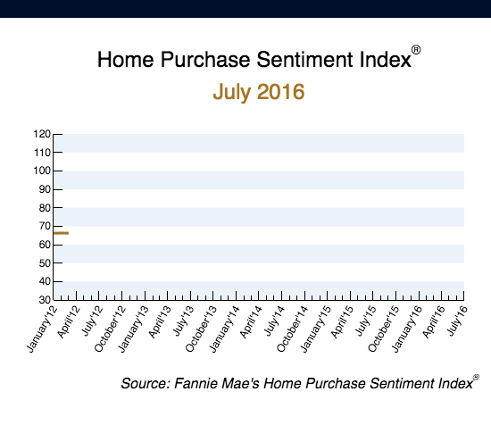 Fannie Mae’s July 2016 Home Purchase Sentiment Index (HPSI) increased 3.3 percentage points in July to 86.5. Overall, the HPSI is up 5.2 points since this time last year.