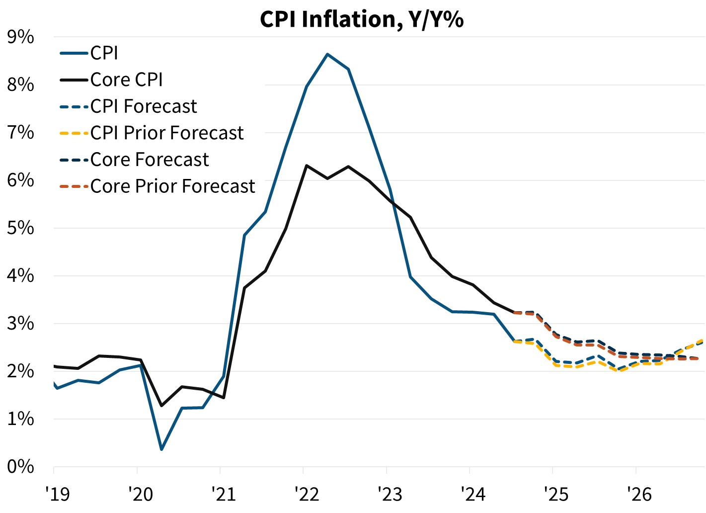 Core inflation remains sticky. Recent inflation indicators have come in largely in line with our expectations, therefore our outlook for year-over-year change in inflation is little changed.