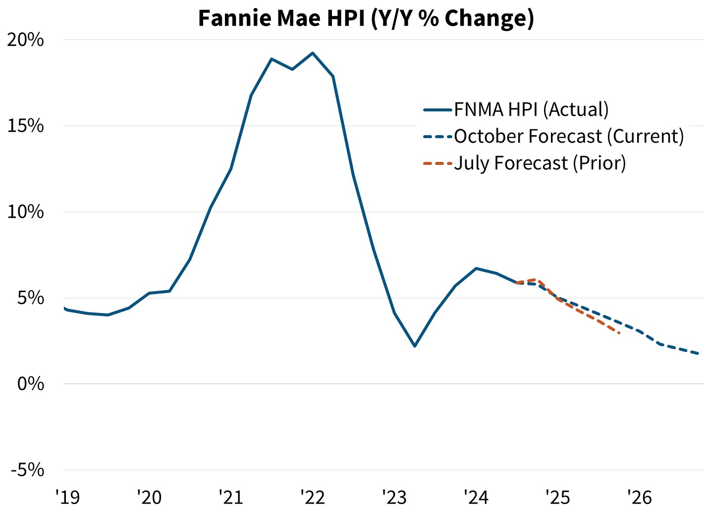 Our quarterly single-family home price forecast, last updated in October, remains, by design, unchanged this month. We project home prices on a national basis will rise 5.8 percent in 2024 and 3.6 percent in 2025 on a Q4/Q4 basis. Our next home price update will be in January.