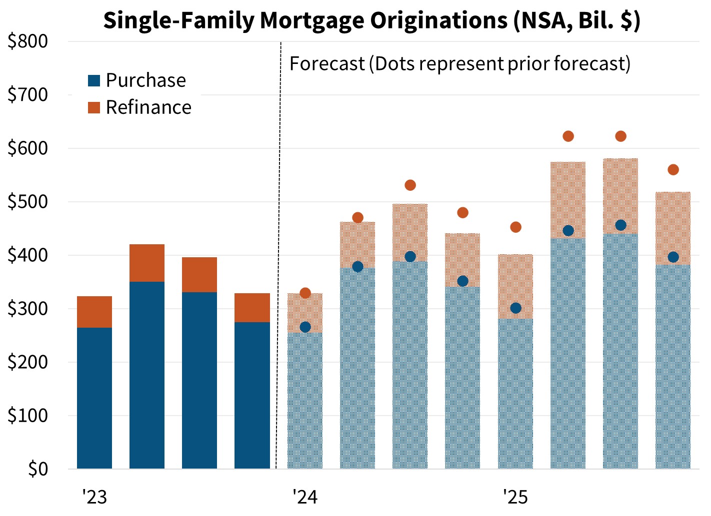 For refinances, we have revised downward our expectation for 2024 volumes to $368 billion, $47 billion lower than the prior months' forecast, with revisions again driven by the higher mortgage rate expectation. This higher interest rate path has also caused us to revise downward refinance volumes in 2025, to $539 billion.