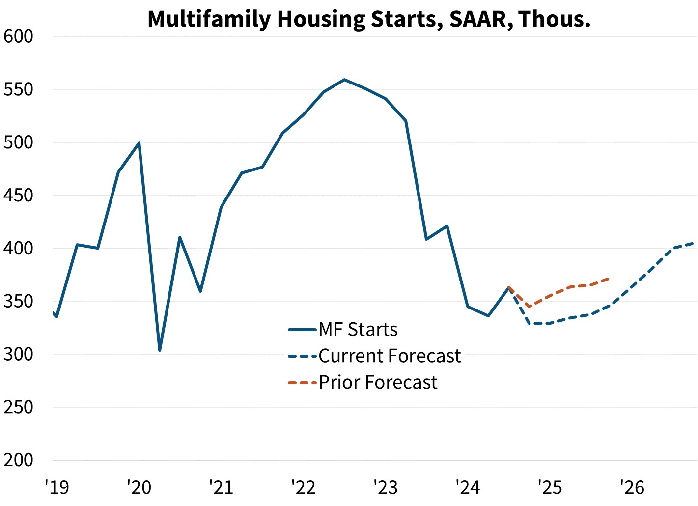 Our multifamily housing starts forecast was revised notably downward based on incoming data and higher interest rates. While the multifamily starts series is notoriously volatile, we continue to believe demographic trends will be supportive of multifamily construction in the longer term once the current high levels of units in the construction pipeline are completed.