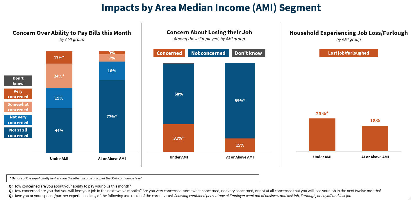Through the second and third quarters, we observed the consistent effect of the coronavirus pandemic on concerns about paying bills and about job loss, and experience with job loss and furloughs. The impact has been generally consistent over this period and it continues to have a disproportionate effect on the lives and finances of renters, minorities, and those with lower incomes. Our NHS data shows that lower-income households, renters, and minorities are two to three times more likely to be concerned about their ability to pay their bills. They are also significantly more likely to be concerned about job loss and to have experienced job loss or furlough during the pandemic.