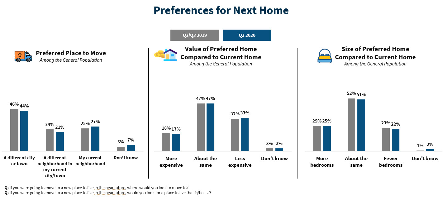 As we observed in Q2, respondents' anticipated timing of their next move has remained stable over the past several years, despite the coronavirus. And, preferences on the location, price, and size of their next home have remained mostly unchanged since 2019.